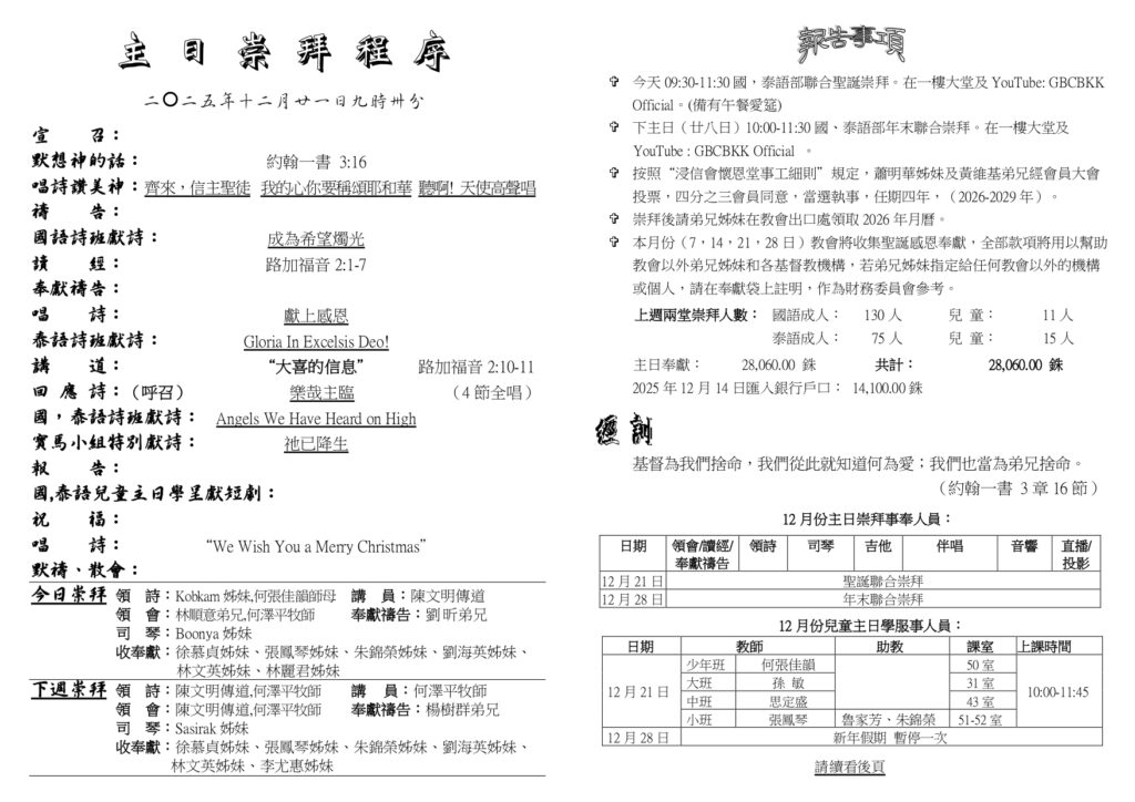 ประจำวันอาทิตย์ที่ 21 ธันวาคม ค.ศ. 2025  เวลา 09:30 น.